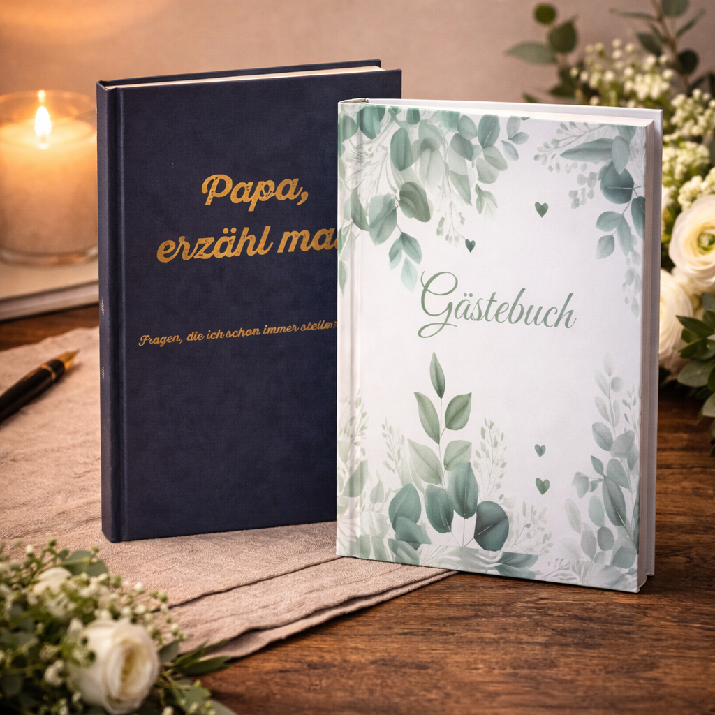Zeiten vergehen – Erinnerungen bleiben. Unsere Bücher helfen dir, Geschichten, Wünsche und besondere Momente festzuhalten – bevor es zu spät ist